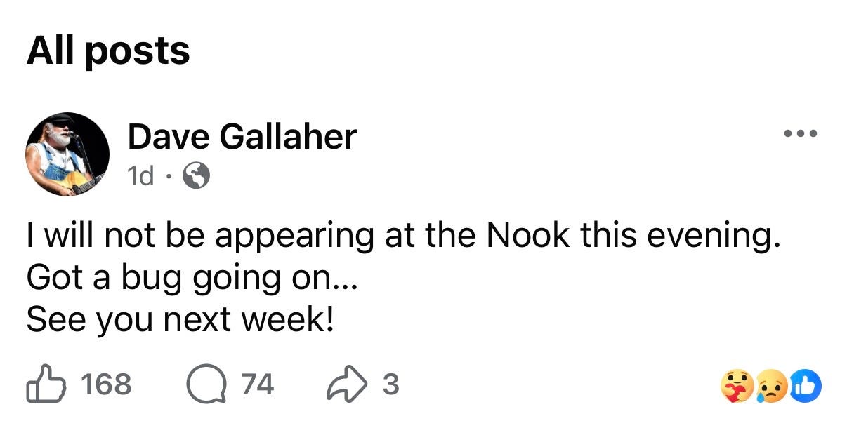 He posted to his Facebook page that he wasn’t going to make it Friday night.